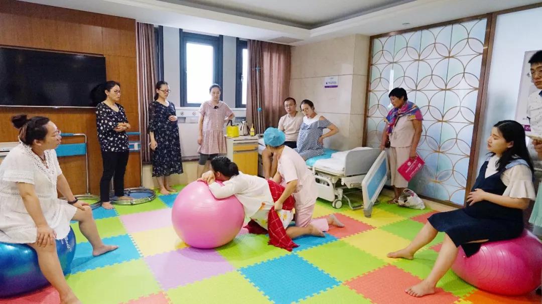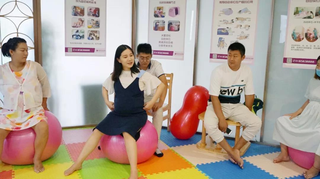 /导乐师为准爸妈演示“摇苹果树”的导乐手法/