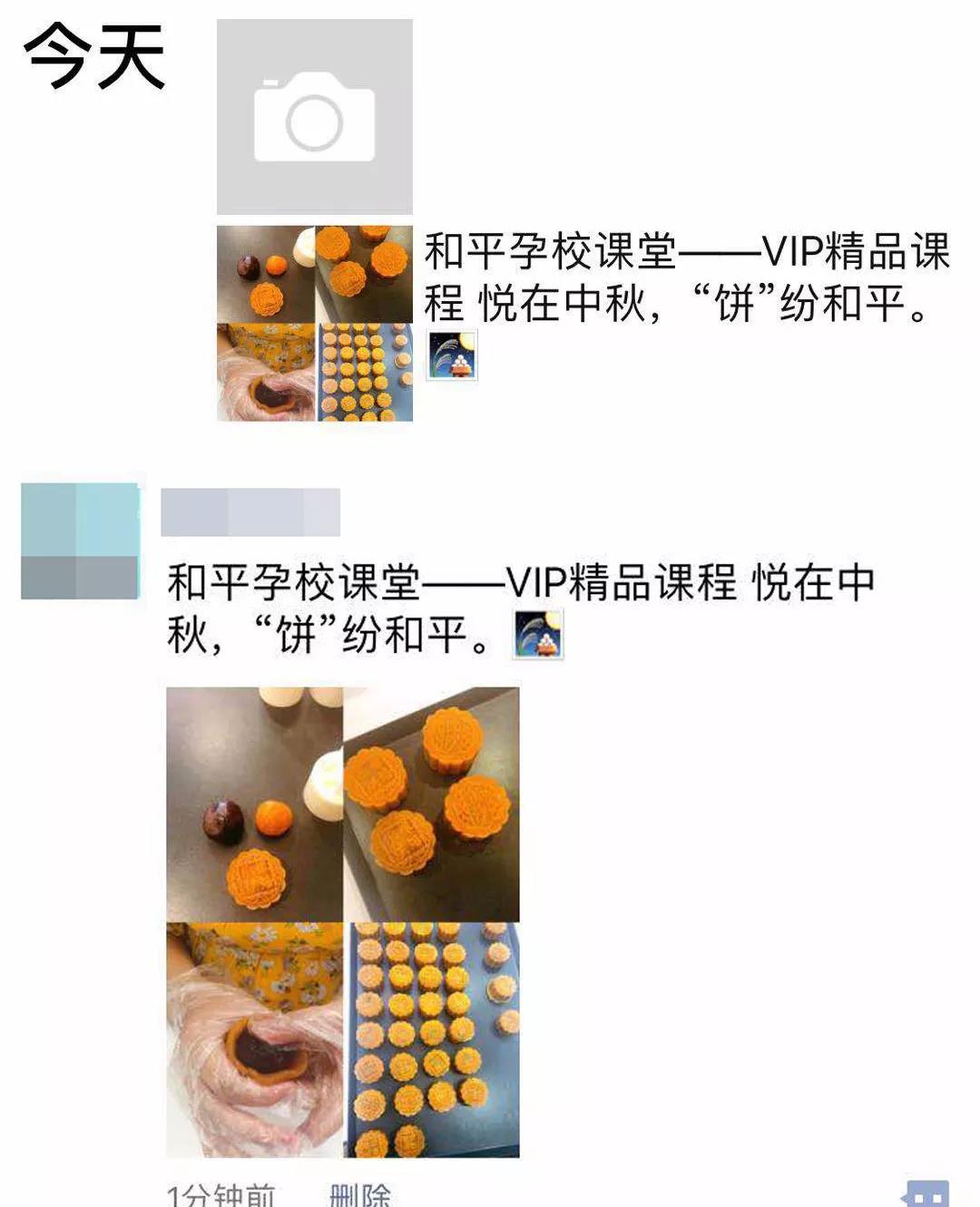 跟宝宝一起做出的第一个月饼,一定是准妈妈们吃过的最好吃的月饼啦!准妈咪们也纷纷在朋友圈晒出了课上的成果,记录着这样一个浪漫温馨的上午~