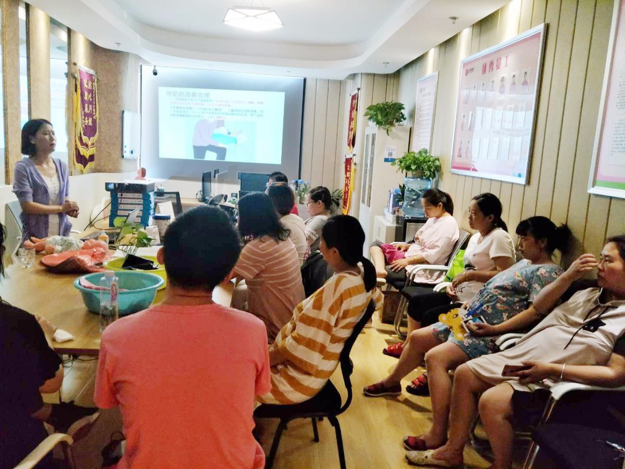 和平妇产医院产科专家在金湖纯良酒店,为金山桥蟠桃社区的孕妈妈们开展孕期知识公益讲座。