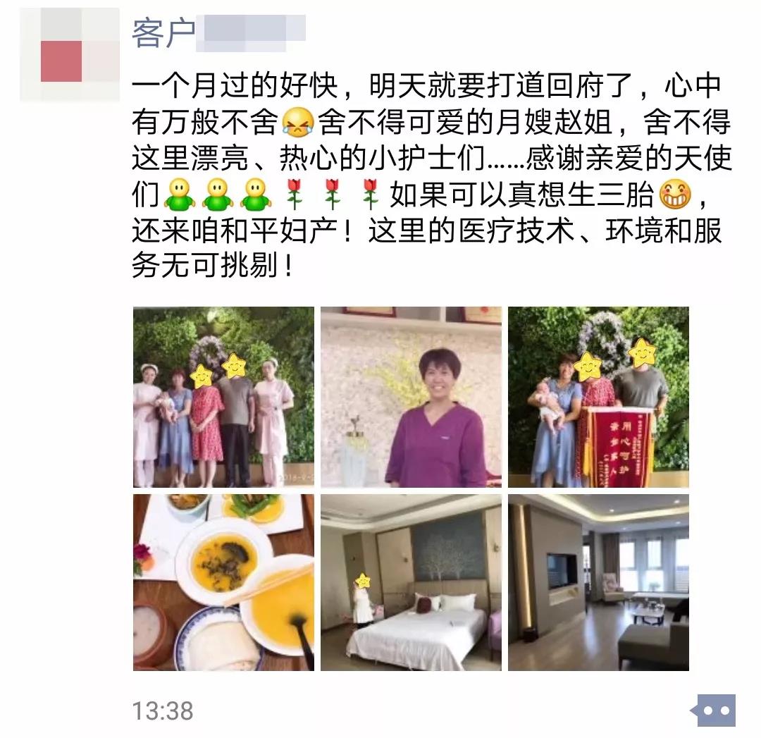 马上要离开月子公寓了,我特别舍不得,还想继续在这儿住下去!我跟老公说,赶紧生三胎,到时候还来和平月子公寓度“蜜”月!