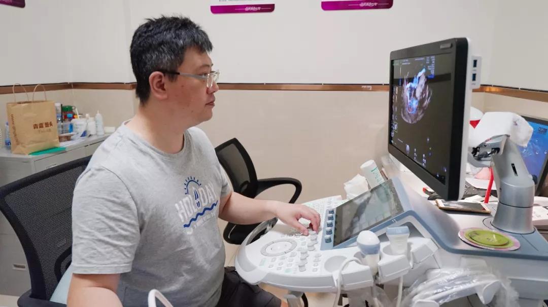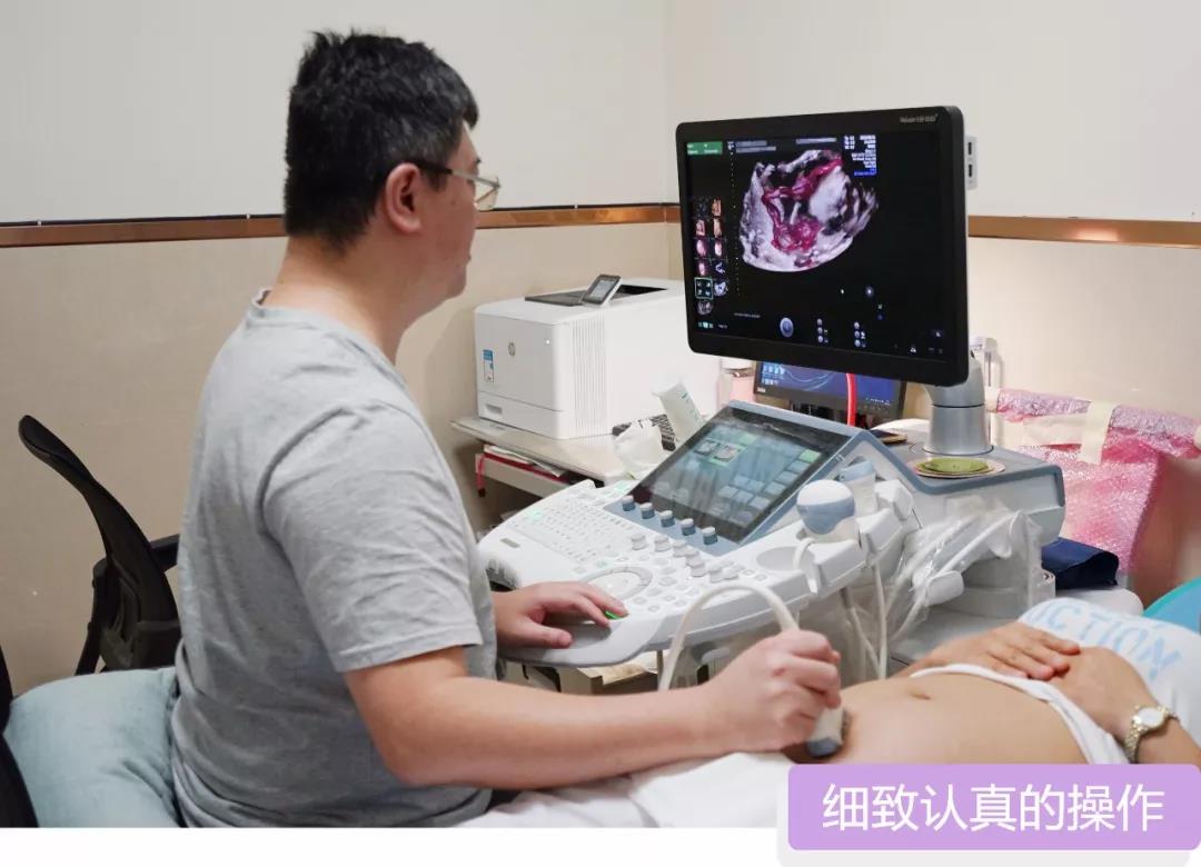 邱博士熟练操作GE-E10高清四维彩超设备,运用E10的超高清成像精确检查胎宝宝在妈妈腹中的状态。