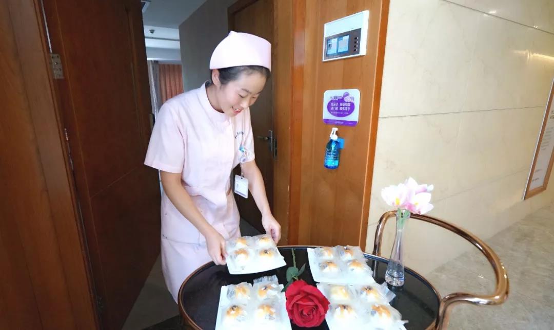 为了让暂时还无法回家的病客们在医院感受到节日气氛,过一个温馨祥和的中秋节,和平妇产医院的医护人员们走进病房,为大家送去精心准备的手工月饼。