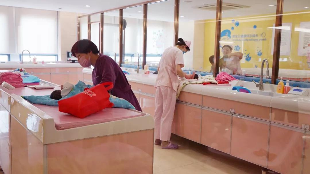 ▲婴儿SPA馆内医护人员正在熟练地为宝宝进行抚触