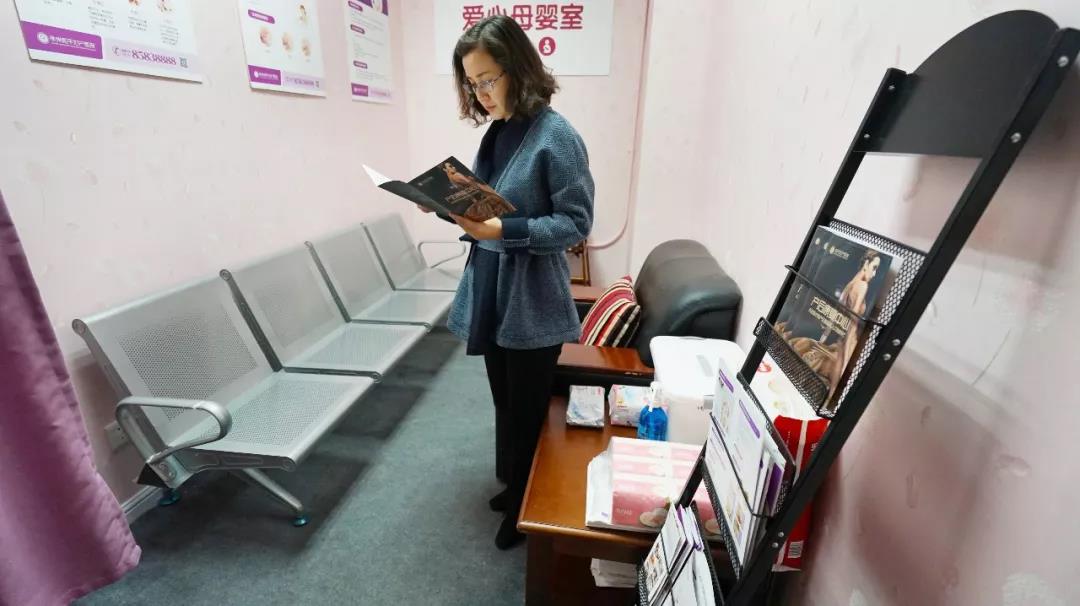 ▲母婴室内的报刊架上摆放了多种母乳喂养宣传资料