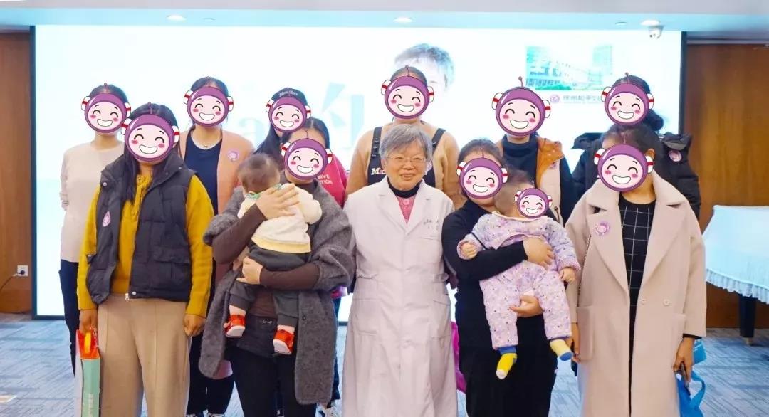 ▲王秀英主任保胎成功的妈妈们向其致谢合影
