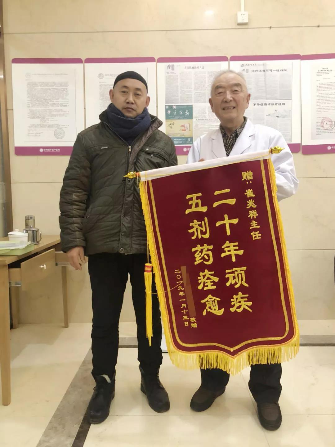 1月13日一早,和平妇产医院中医科崔兆祥主任的诊室里,来了一位特别的病人。他不仅是来挂号看诊的,还送来了一面“迟到”了三年的锦旗!