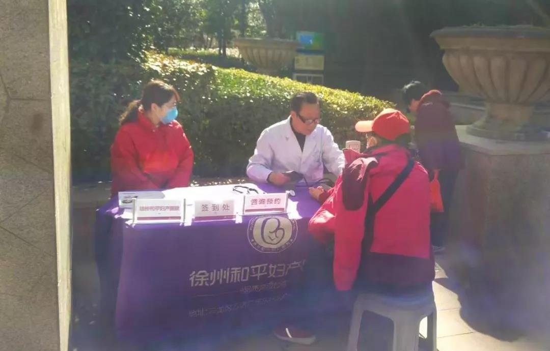 在徐州风尚自由城小区,和平妇产的义诊团队提供了测血压、健康服务等服务,受到居民们的热烈欢迎。