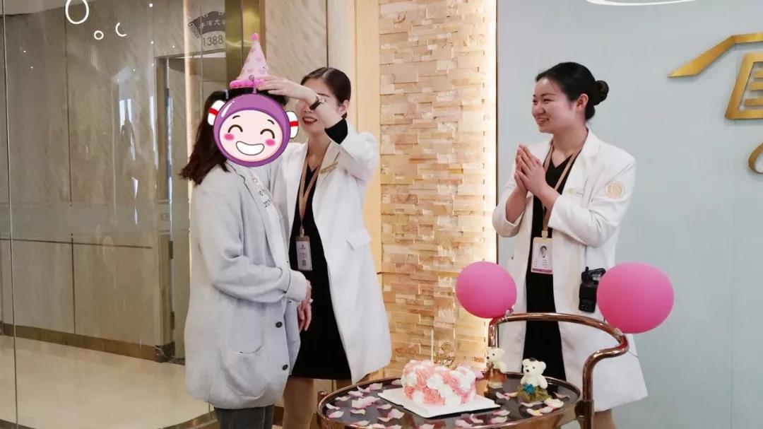 在“祝你生日快乐~”的歌声,护士、客服美女们簇拥着一脸“呆萌”的宝妈李女士走进这个为她准备的浪漫空间。看到布置得温馨浪漫的房间,李女士又惊又喜,她完全没想到竟然有一场这么可爱的生日趴等着她!