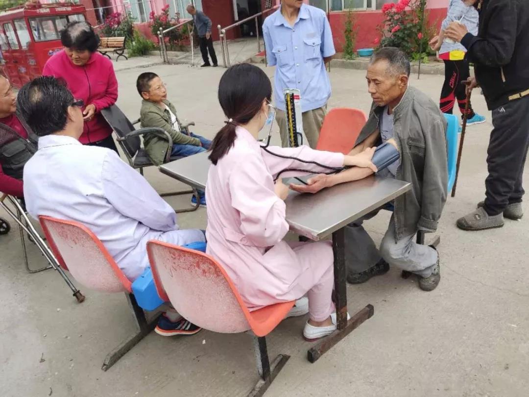 和平妇产医院义诊团队走进敬老院,为老人们测量血压、做健康检查等,现场服务检查的老人非常多,医护人员也为他们认真答疑解惑。