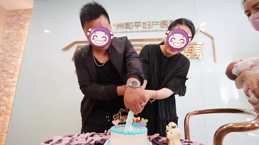 一群可爱的白衣天使围绕在安女士和宝宝身边,唱生日歌、送上祝福,还给小宝贝戴上了一顶萌萌的生日帽!宝爸宝妈共同切开蛋糕,为宝宝庆祝他人生中的第一次生日!