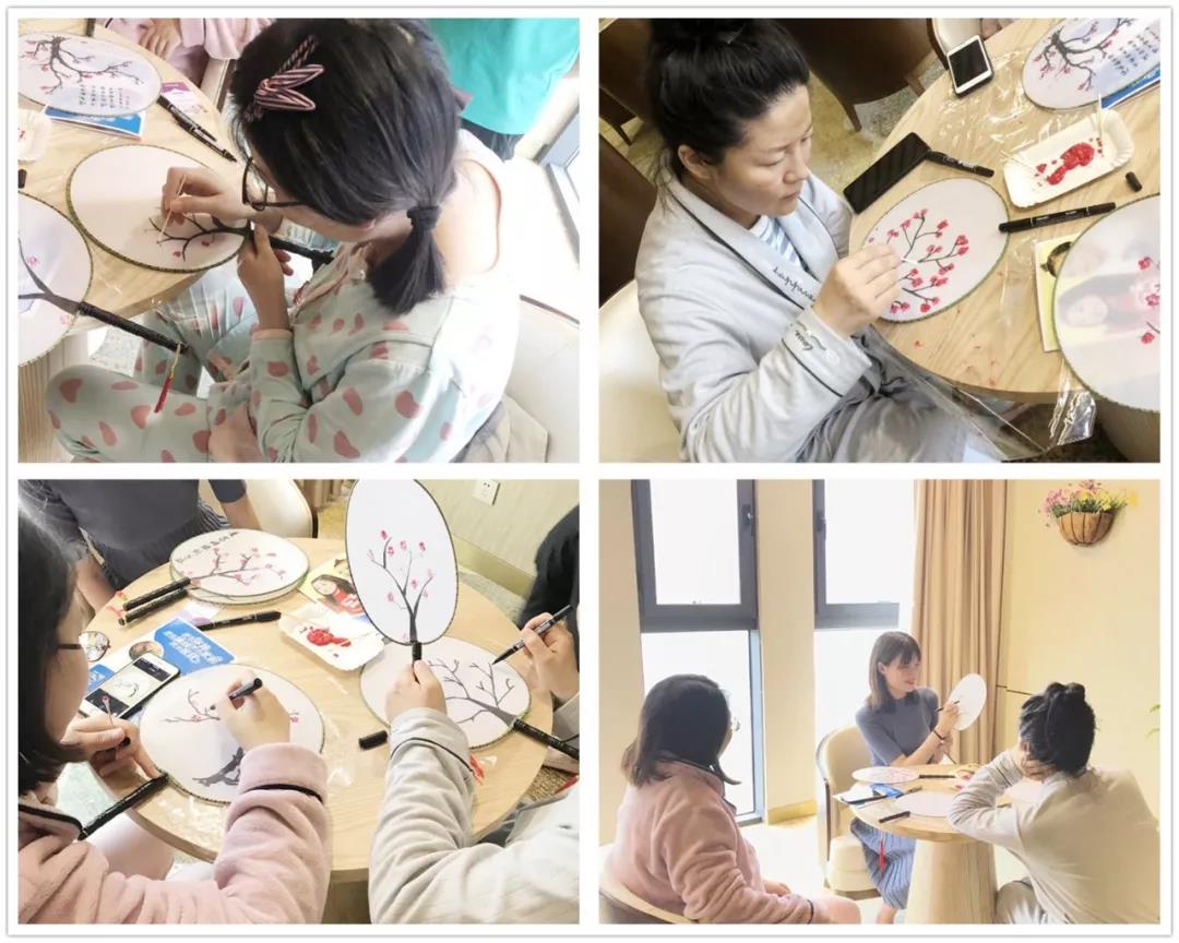 和平医疗级月子公寓特意为月子里的宝妈们准备了一场古风团扇的手工制作,在悠闲清爽的午后,宝妈们专心致志地装饰着自己的小团扇,这样的月子生活也太惬意了吧!