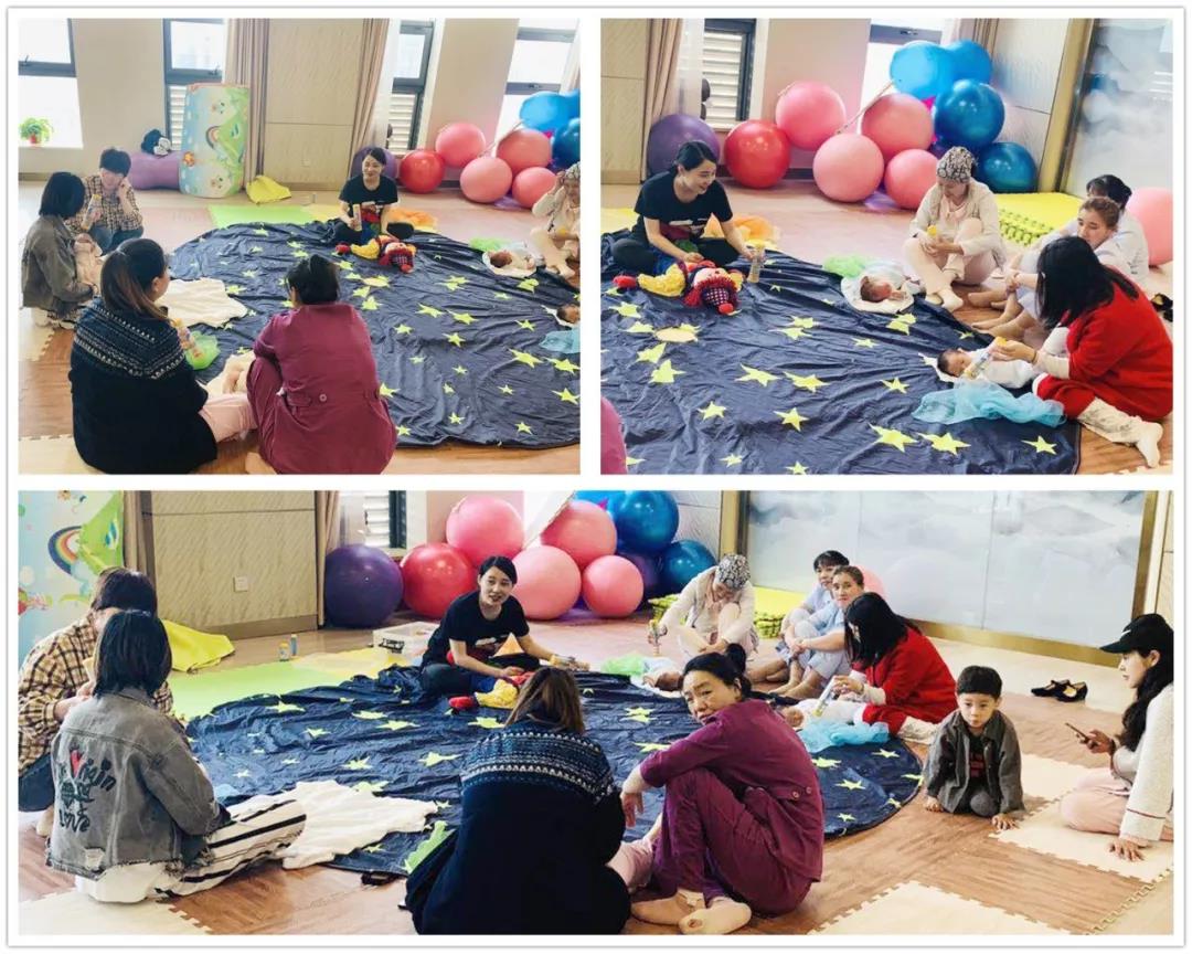 在可爱的小毯子上团团坐,老师用音乐温柔的引导,妈妈们一边轻抚宝宝的身体一边和宝宝一起感受音乐的美好,这个场面实在是太温馨啦!