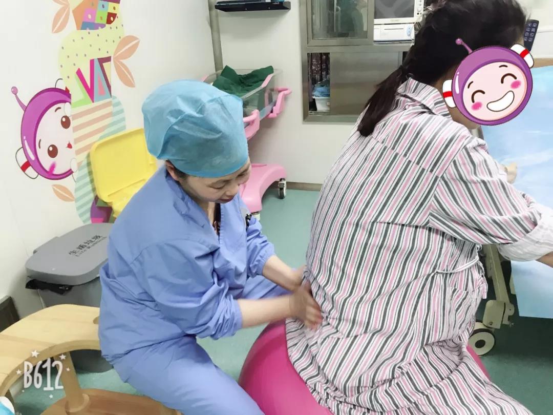 因为一直在手术台前接生宝宝,产房里的“导乐分娩”徐护士长还是第一次体验。产房护士长李艳亲自来给她按摩放松,坐在分娩球上徐护士长乐呵呵地感叹:咱这儿的导乐真不孬~