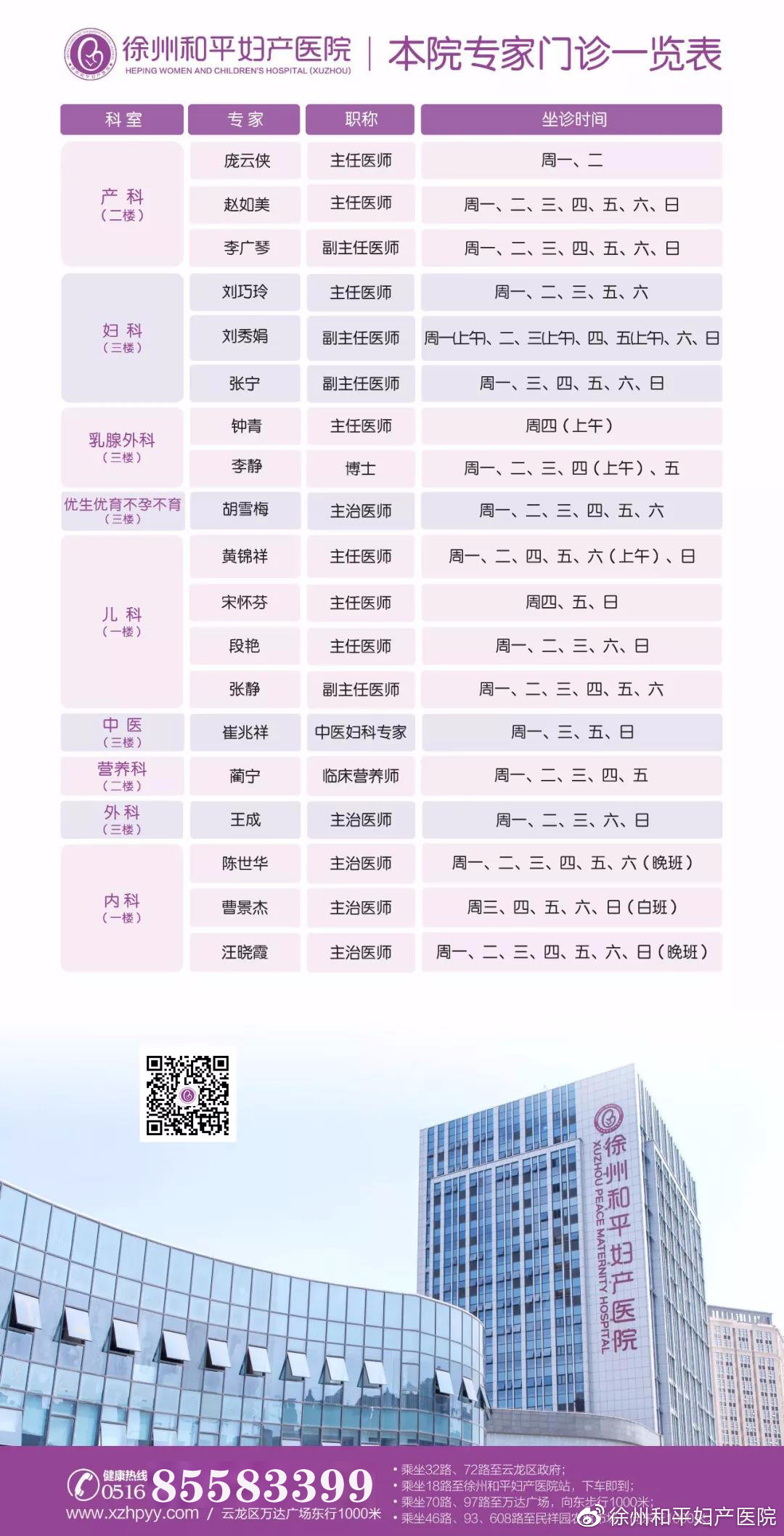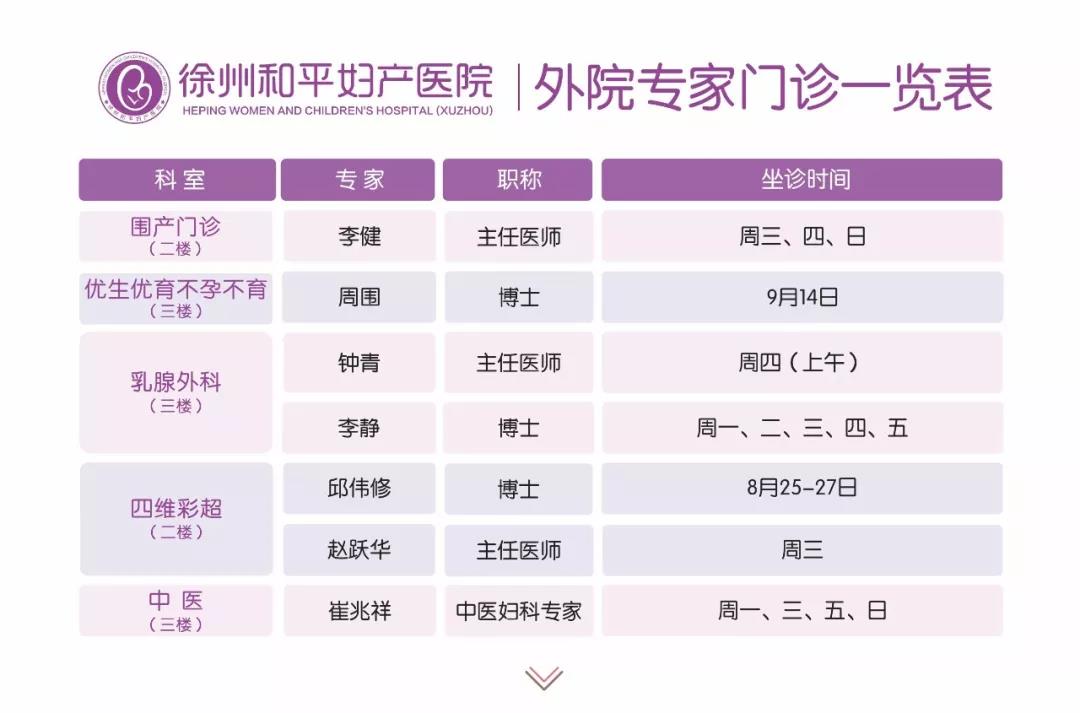 徐州和平妇产医院2019年8月26日—9月1日专家坐诊时间表,有需要的亲,赶紧预约哦~~