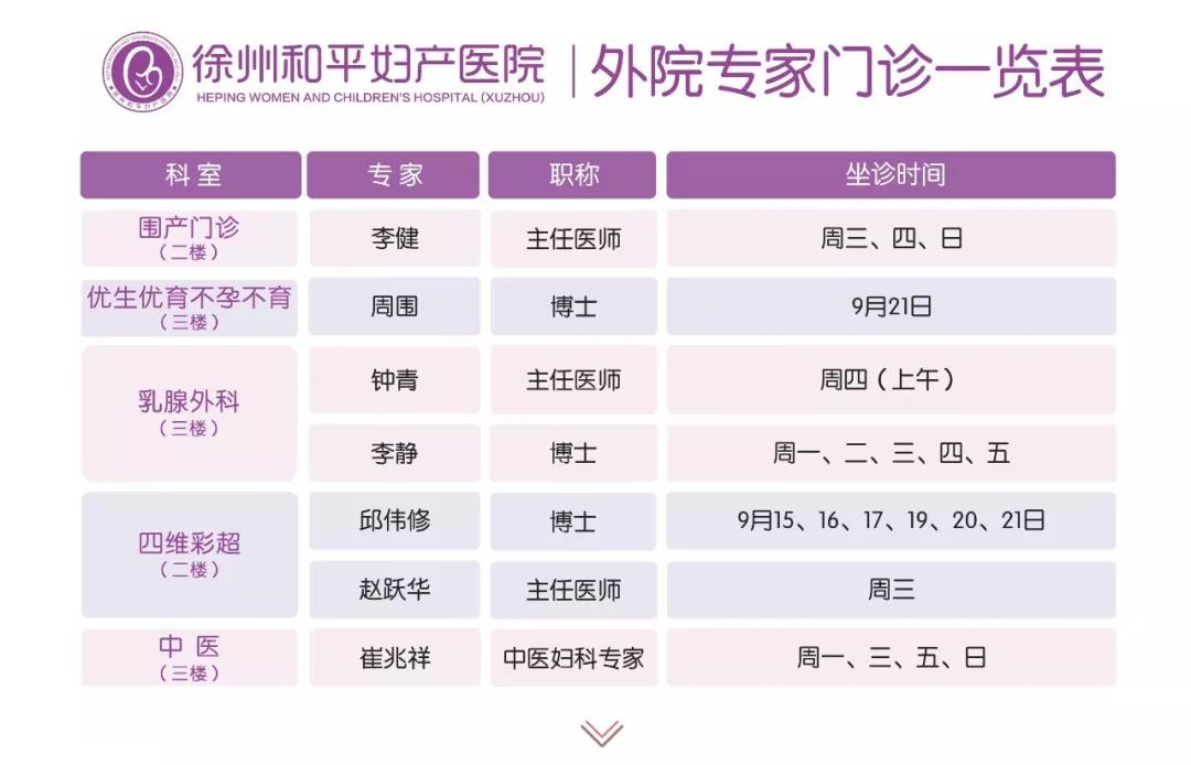 徐州和平妇产医院2019年9月16日—9月22日专家坐诊时间表,有需要的亲,赶紧预约哦~~