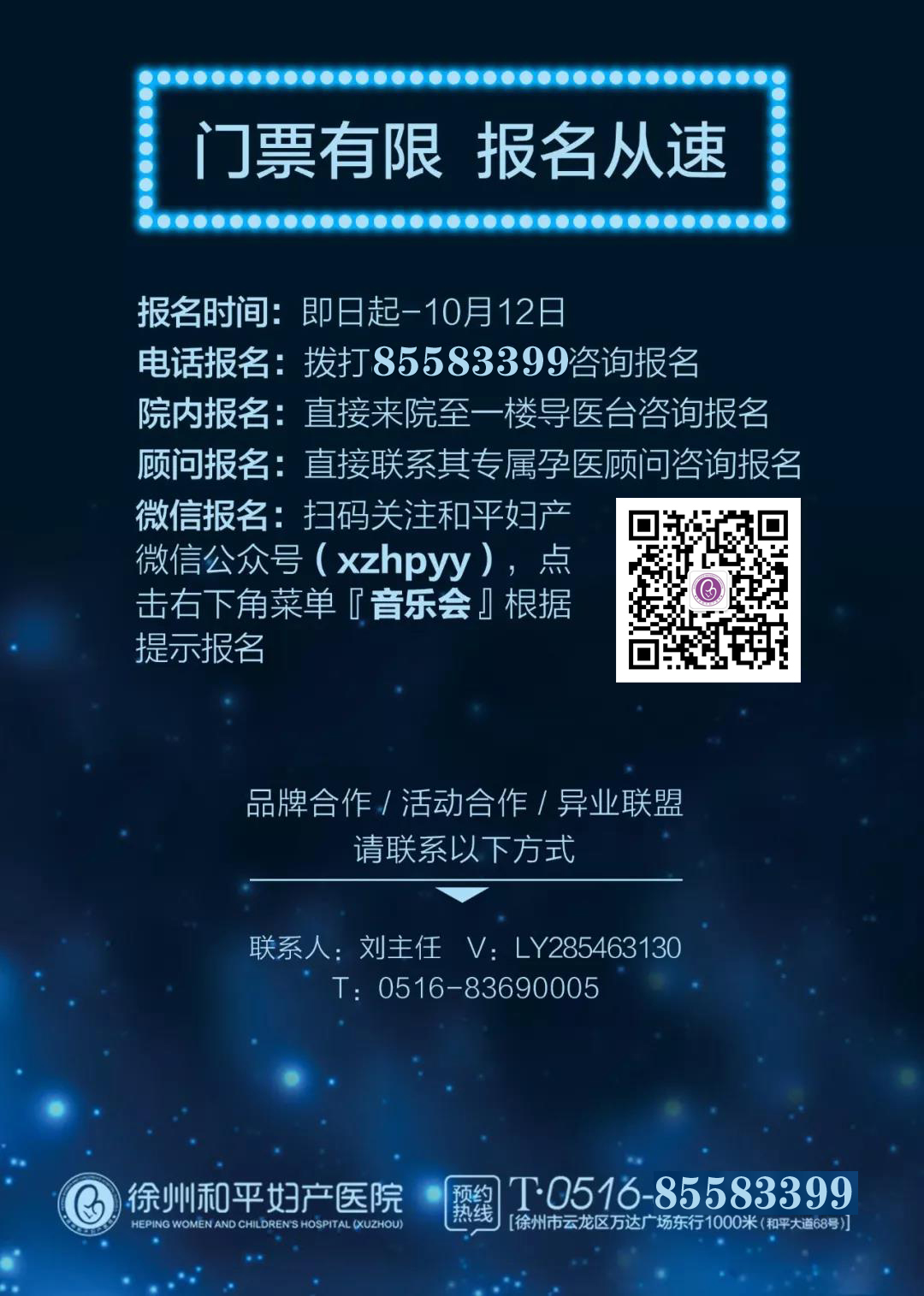 官方报名:关注和平妇产医院官方微博,私信“音乐会”报名,报名后会有工作人员与您联系领取邀请函相关事宜。
