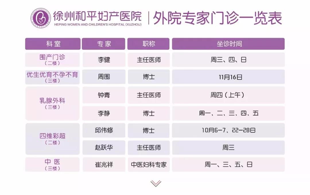 徐州和平妇产医院2019年10月14日—10月20日专家坐诊时间表,有需要的亲,赶紧预约哦~~