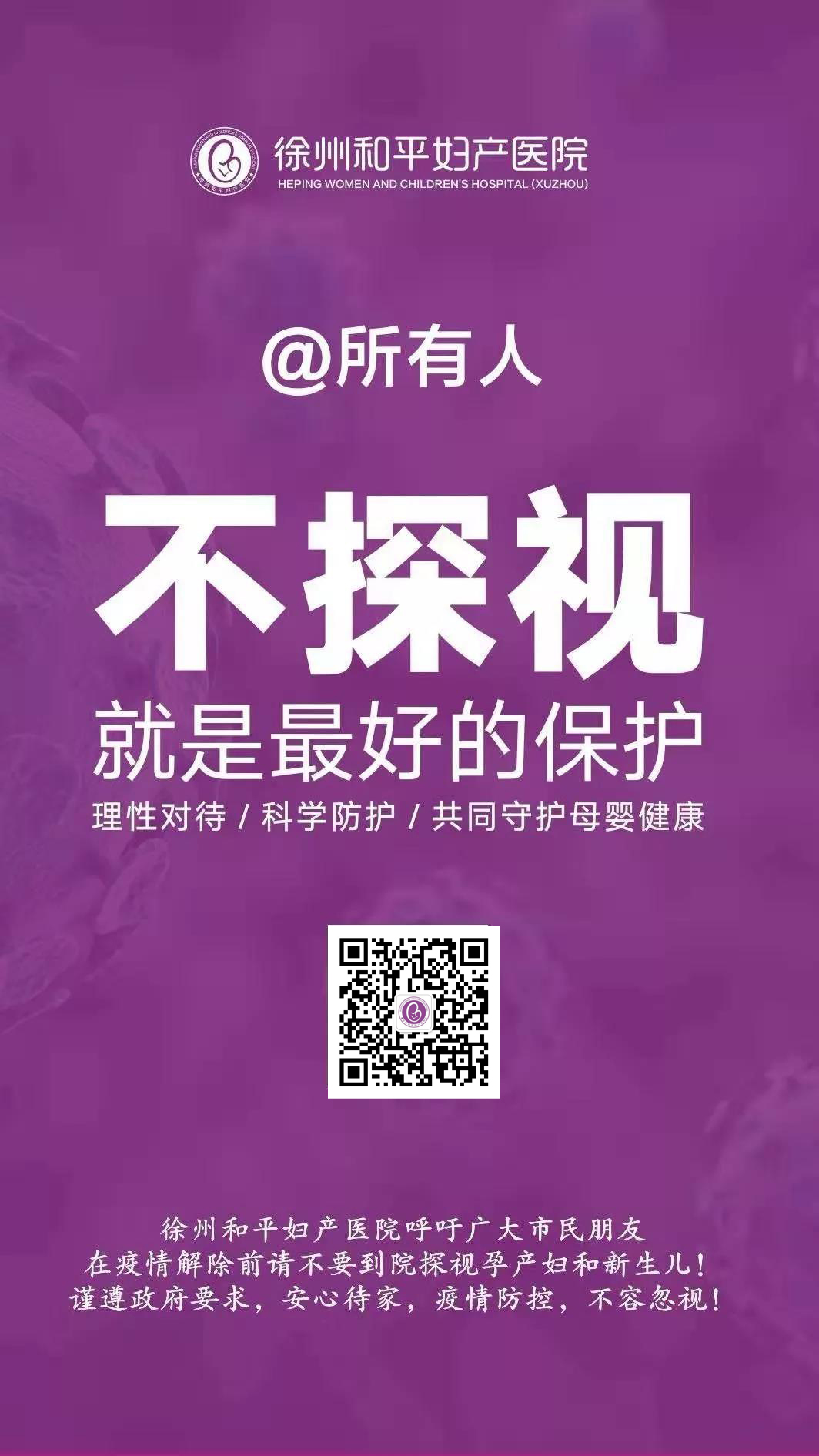 广大市民朋友,为了您和家人的健康,在疫情解除前请不要到院探视孕产妇和新生儿!也请严格遵守医院相关规定,积极配合体温测量及消毒工作等。孕产期妈妈及新生宝宝都很脆弱,更需要安全的就诊环境,您的理解和配合就是对她们最好的守护!