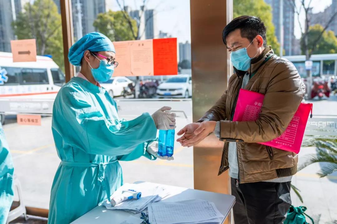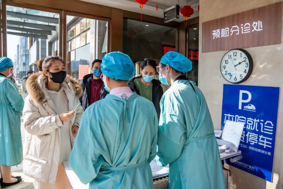 面对新型冠状病毒疫情的爆发,和平妇产医院当即从全院抽调医护人员,在医院门口设置了预检分诊处,对来院人员进行测量体温、手部消毒、信息登记、来源地问询、人员分流等,每一个步骤都严谨有序,筑起阻断病毒的第一道防线。