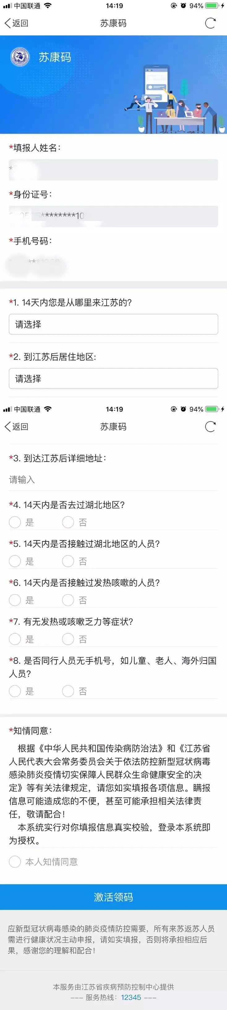 ② 进入“苏康码”,填写相关信息后。生成“苏康码”,并立即申报。