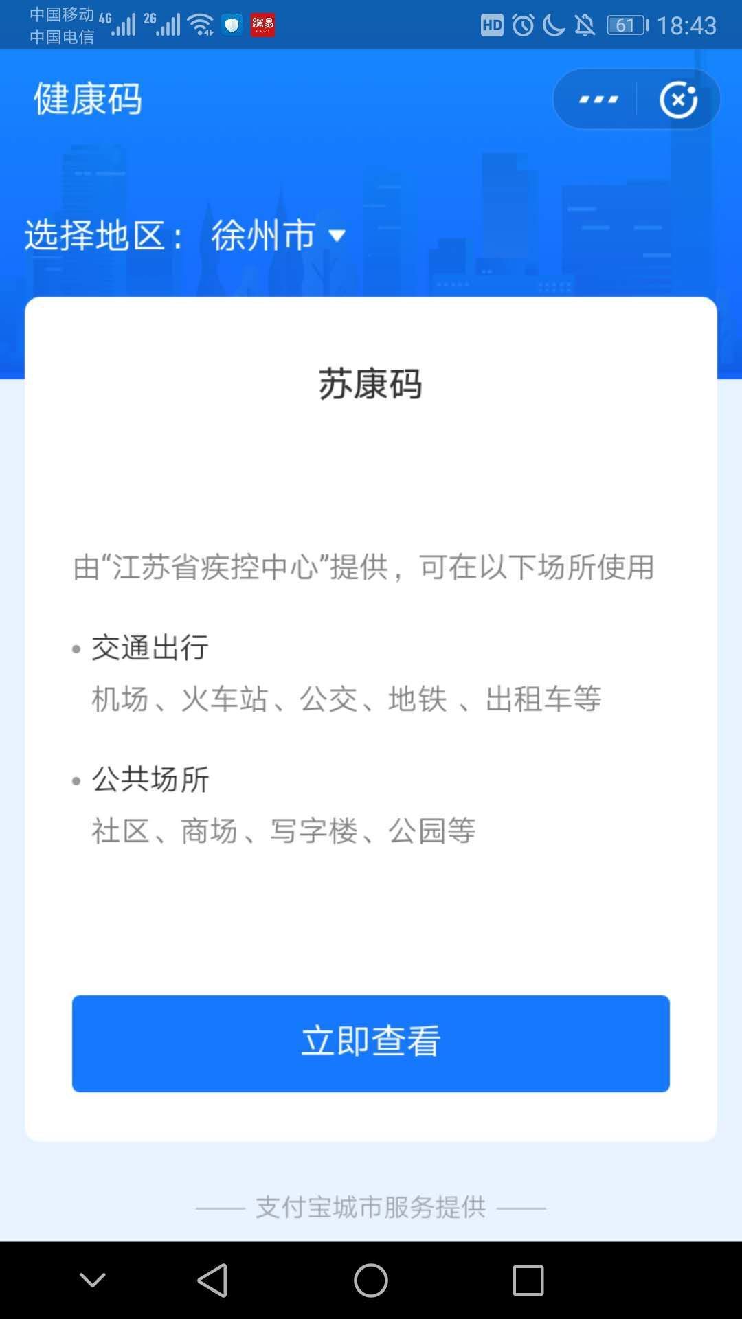 二、支付宝申请苏康码