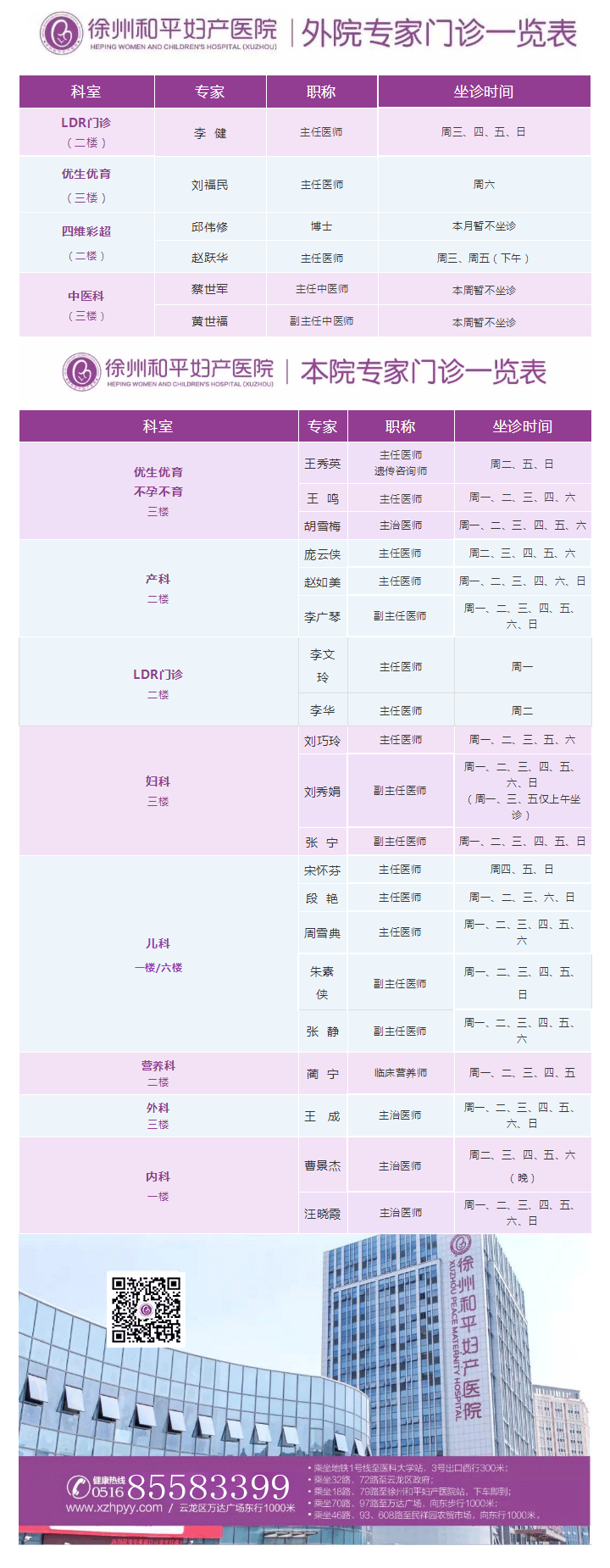 徐州和平妇产医院2020年3月16日—3月22日专家坐诊时间表,有需要的亲,赶紧预约哦~~