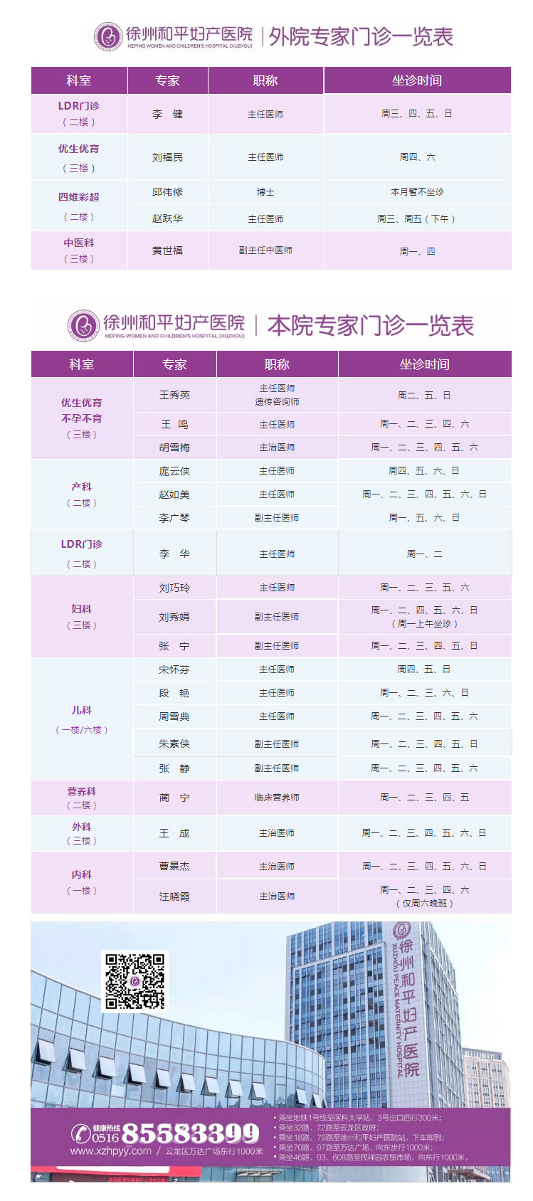 徐州和平妇产医院2020年4月20日—4月26日专家坐诊时间表,有需要的亲,赶紧预约哦~~