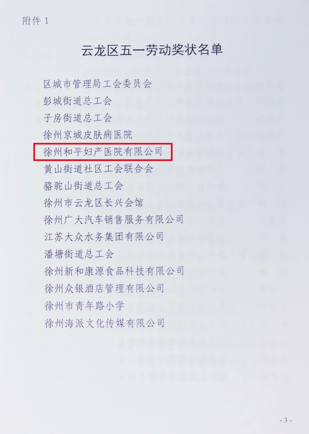 点赞!徐州和平妇产医院荣获云龙区五一劳动奖状、奖章等多项荣誉!