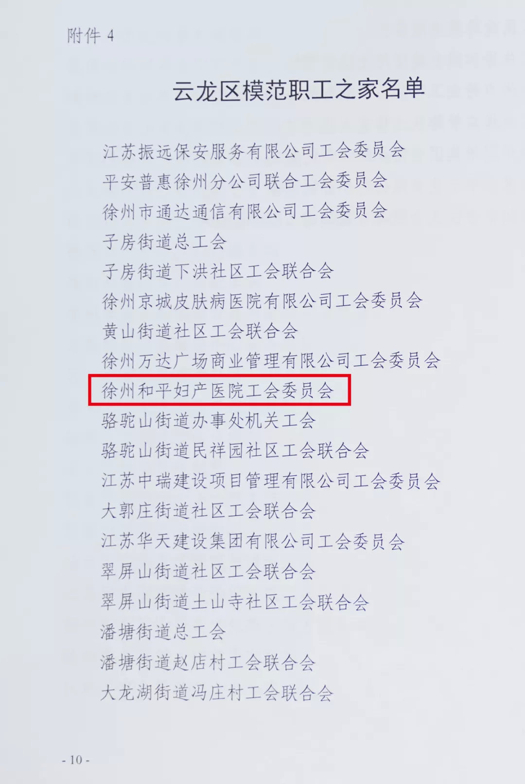 ▲徐州和平妇产医院工会委员会荣获“模范职工之家”表彰