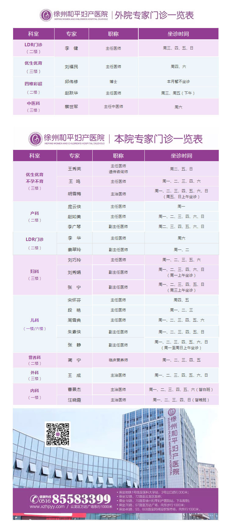 徐州和平妇产医院2020年6月15日—6月21日专家坐诊时间表,有需要的亲,赶紧预约哦~~