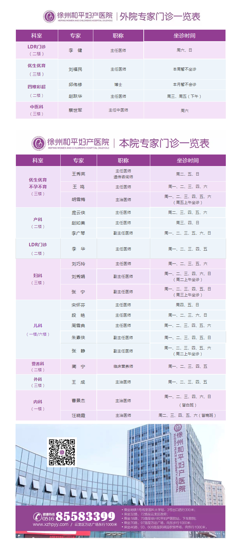 徐州和平妇产医院2020年9月7日—9月13日专家坐诊时间表,有需要的亲,赶紧预约哦~~