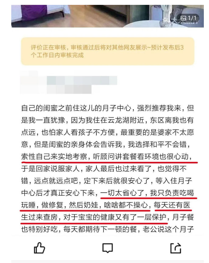 @是吐司啊:一切太省心了,我只负责吃喝玩睡,做修复,奶娃,啥啥都不操心。每天还有医生过来查房,对宝宝的健康又有了一层保护。