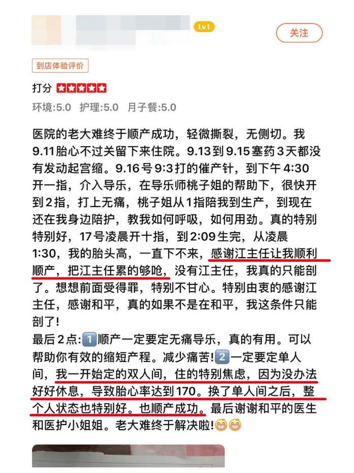 @茶茶:我一开始定的双人间,住得特别焦虑,导致胎心率达到170,换了单人间之后,整个人状态特别好,也顺产成功。