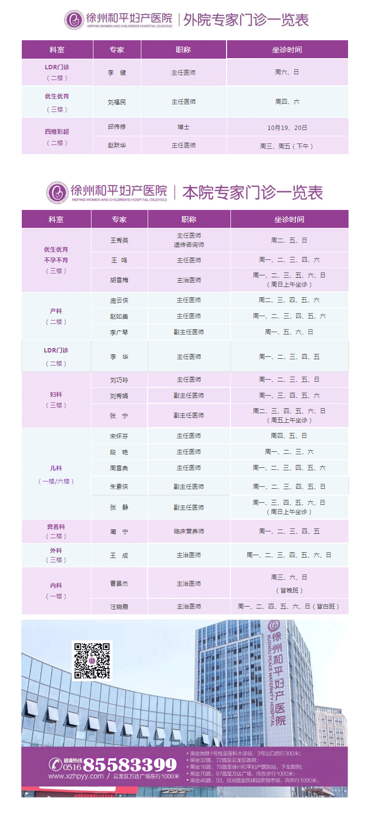徐州和平妇产医院2020年10月12日—10月18日专家坐诊时间表,有需要的亲,赶紧预约哦~~