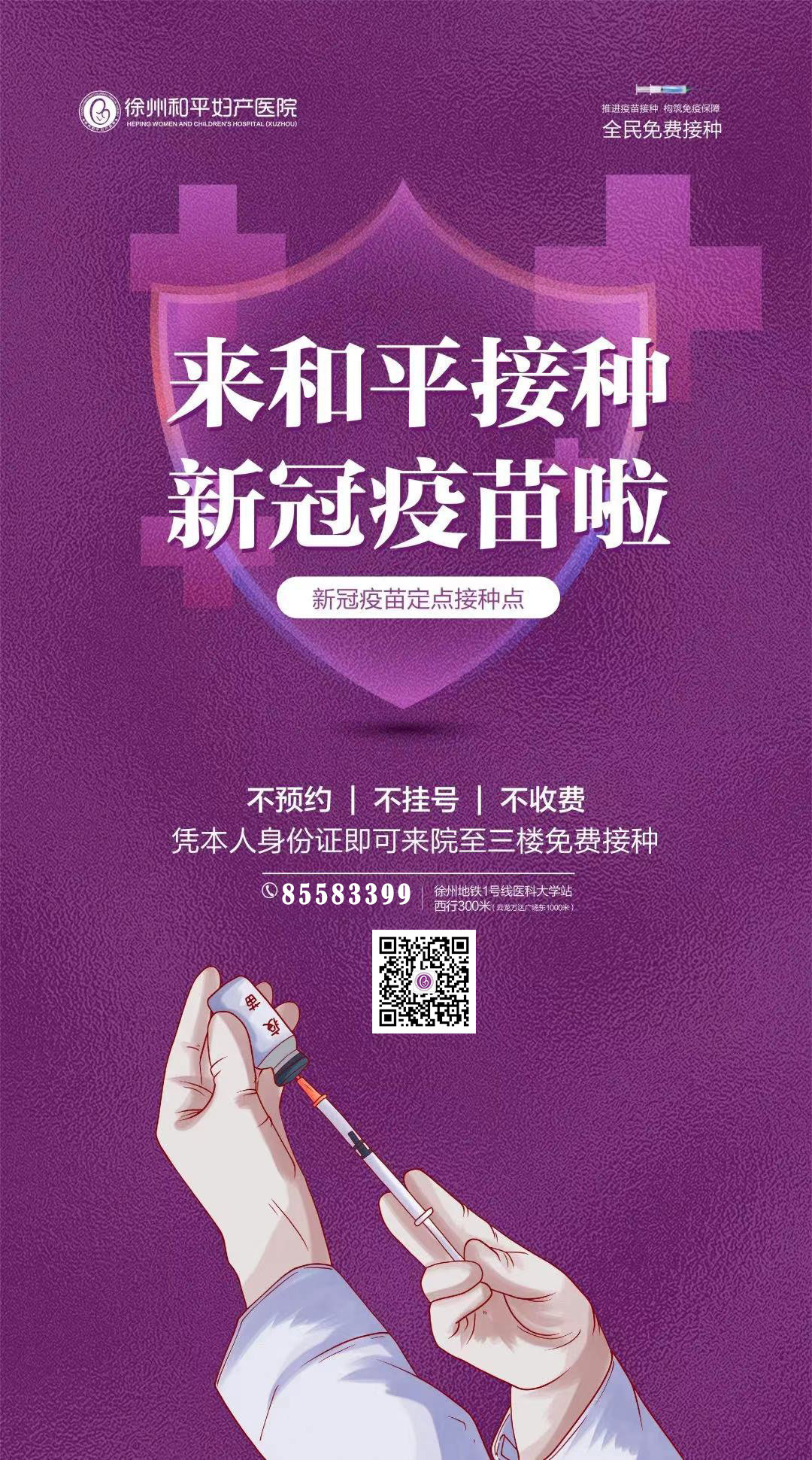 @所有人,徐州和平妇产医院免费接种新冠疫苗啦