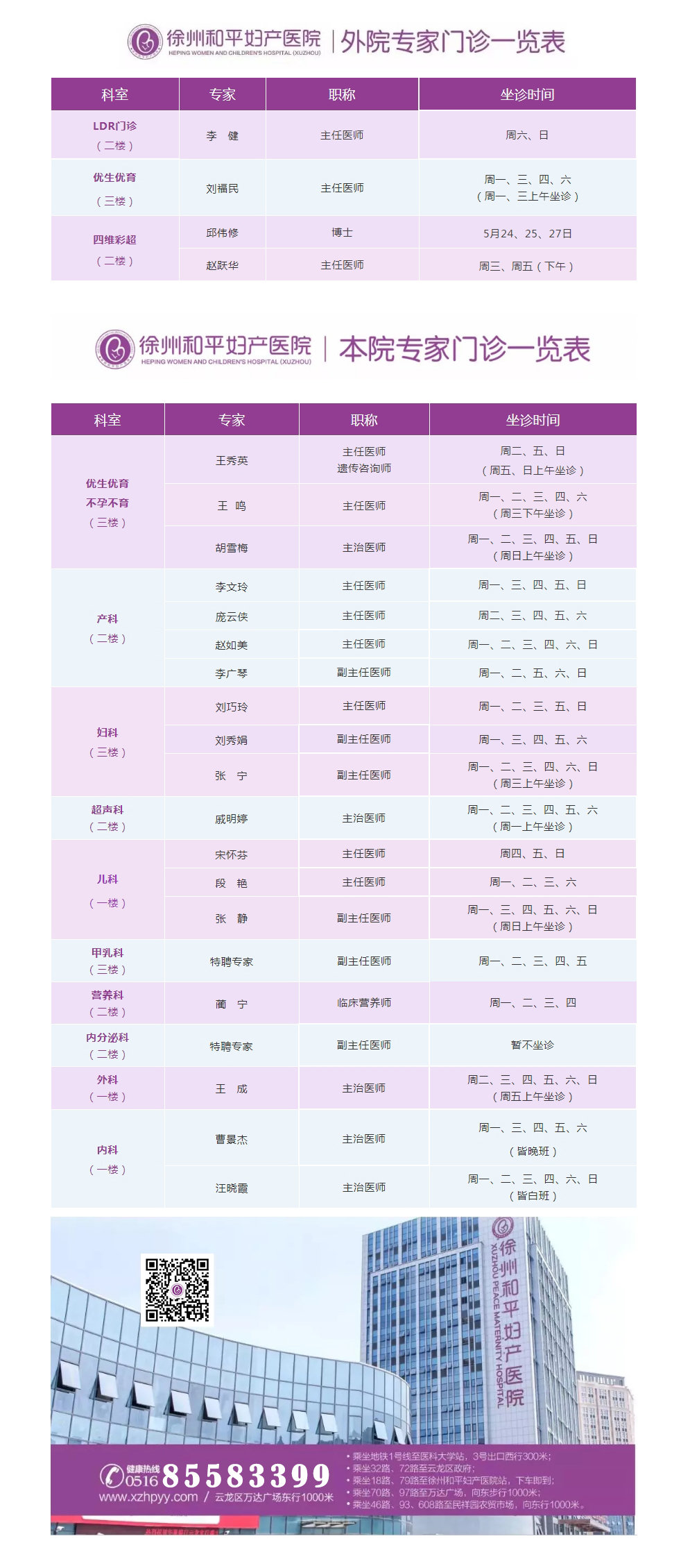 徐州和平妇产医院2021年5月24日—5月30日专家坐诊时间表,有需要的亲,赶紧预约哦~~
