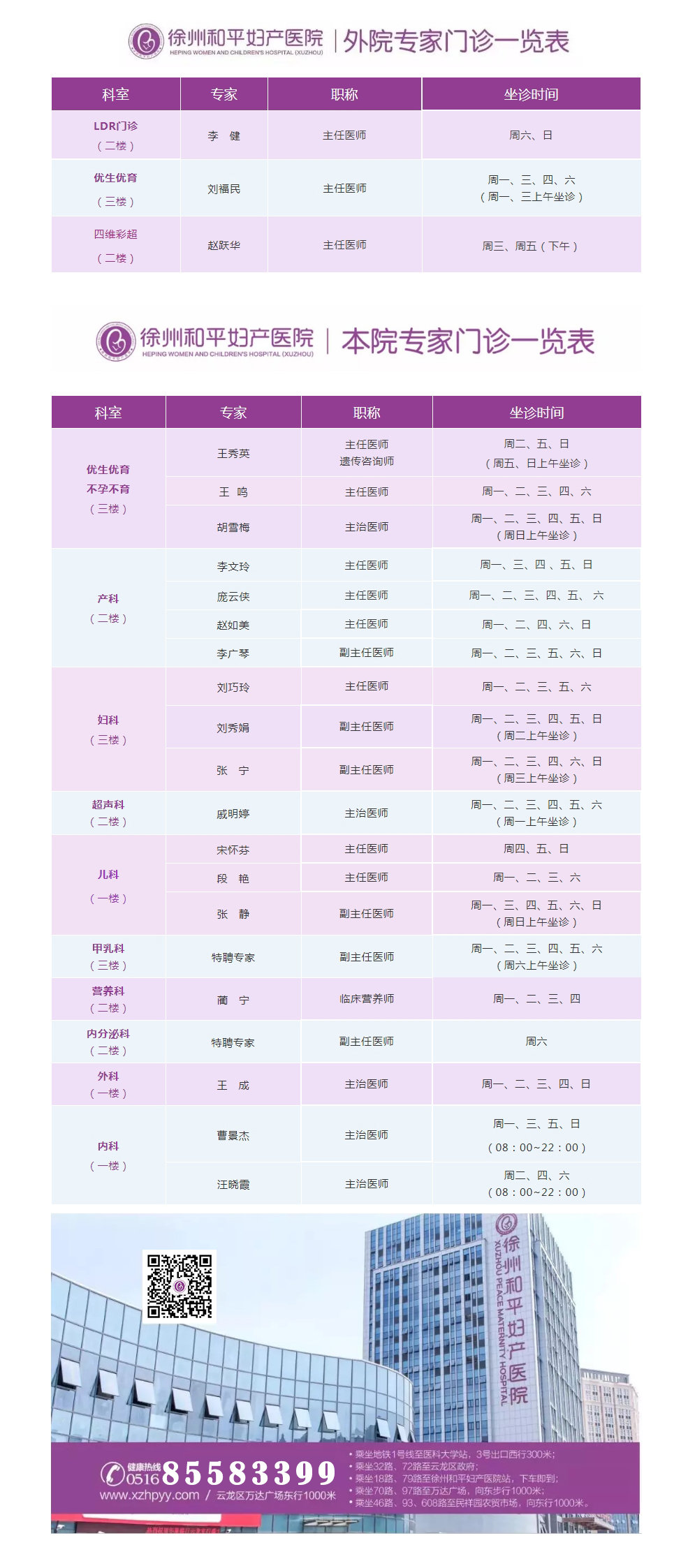 徐州和平妇产医院2021年7月5日—7月11日专家坐诊时间表,有需要的亲,赶紧预约哦~~