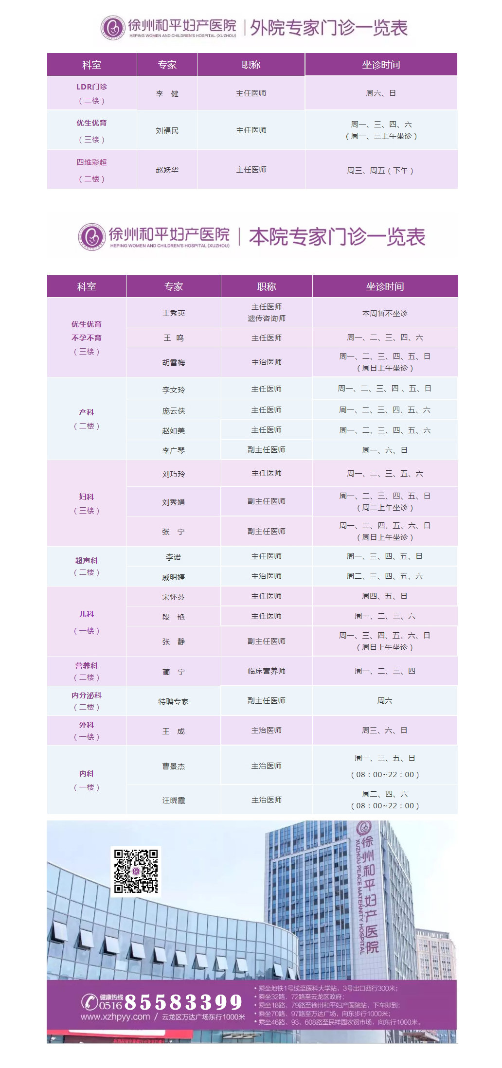 徐州和平妇产医院2021年8月2日—8月8日专家坐诊时