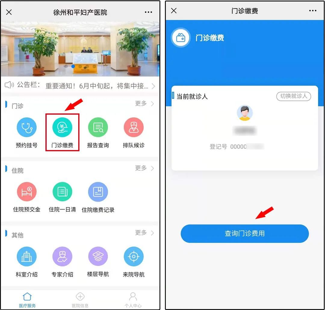 若需门诊缴费,在首页选择【门诊缴费】查询门诊费用并按提示缴费;