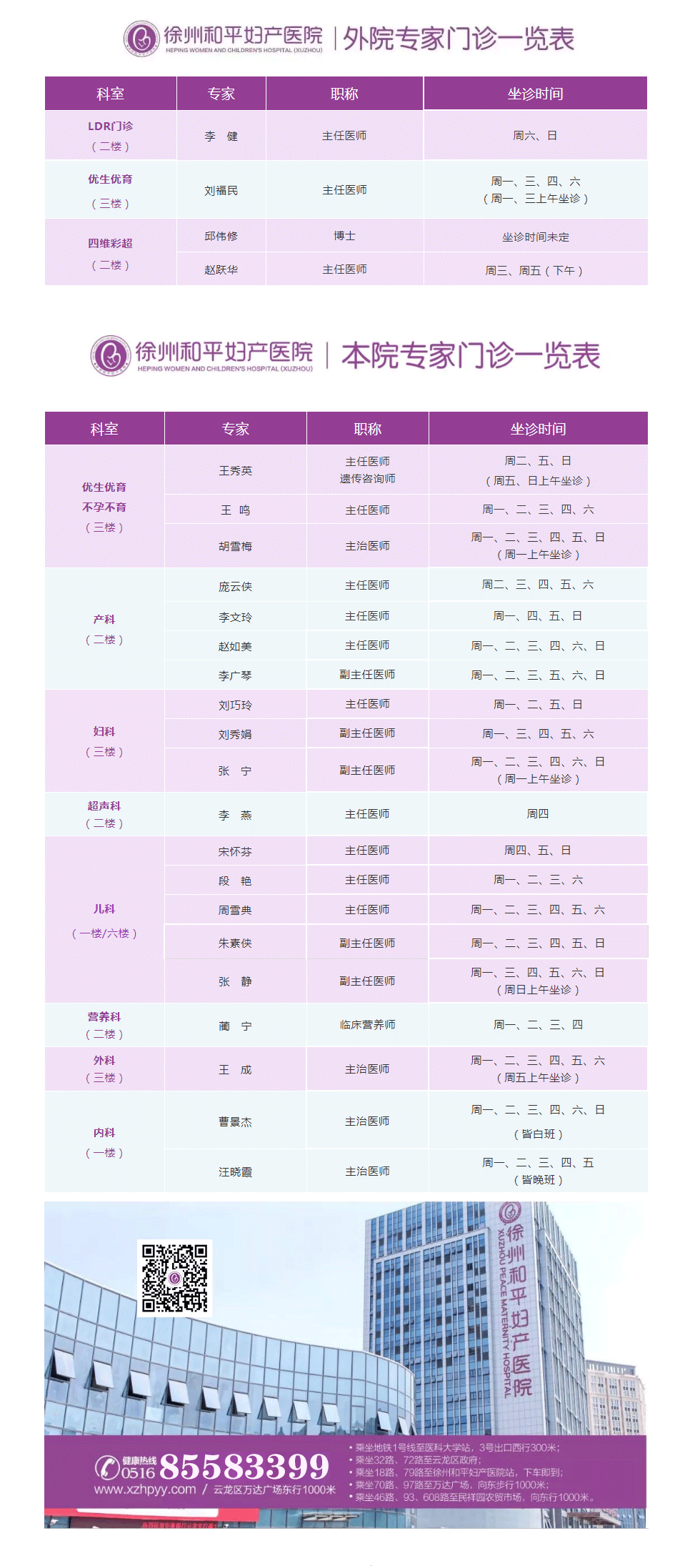 徐州和平妇产医院2021年3月8日—3月14日专家坐诊时间表,有需要的亲,赶紧预约哦~~
