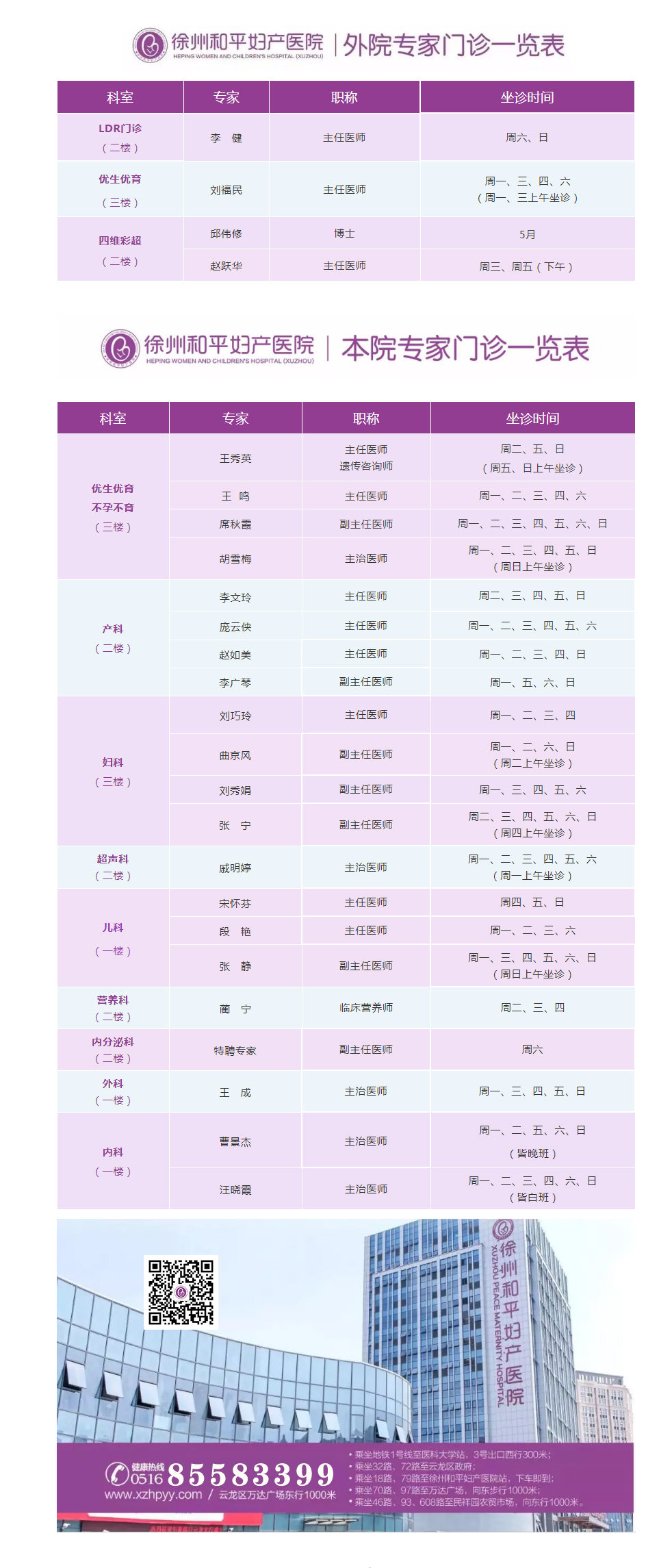 徐州和平妇产医院2021年4月12日—4月18日专家坐诊时间表,有需要的亲,赶紧预约哦~~
