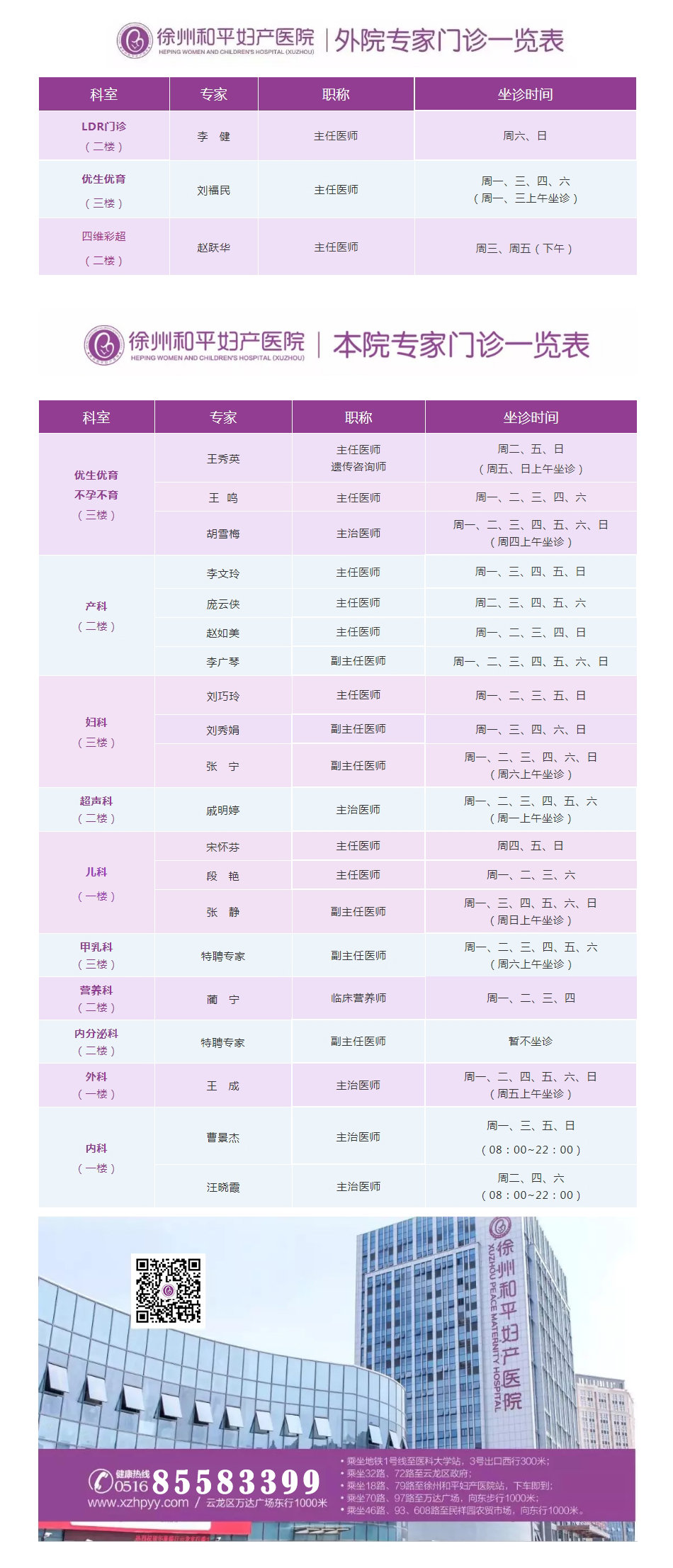 徐州和平妇产医院2021年5月31日—6月6日专家坐诊时间表,有需要的亲,赶紧预约哦~~