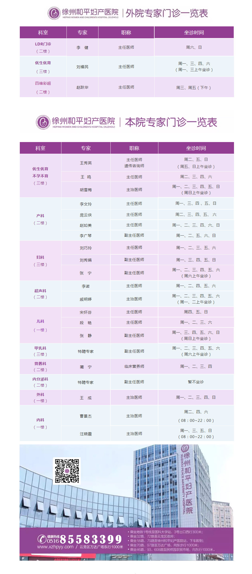 徐州和平妇产医院2021年7月12日—7月18日专家坐诊时间表,有需要的亲,赶紧预约哦~~