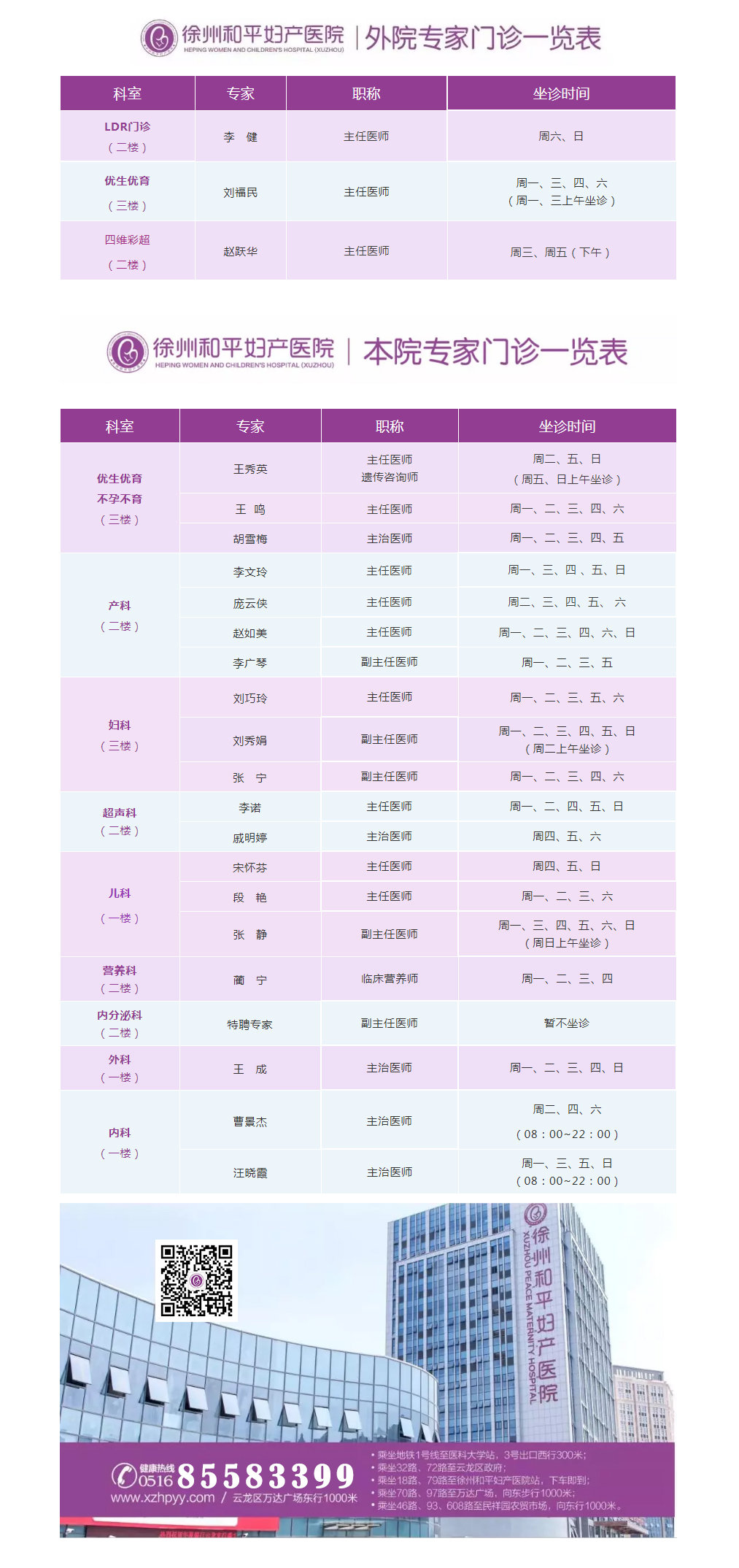 徐州和平妇产医院2021年7月26日—8月1日专家坐诊时间表,有需要的亲,赶紧预约哦~~